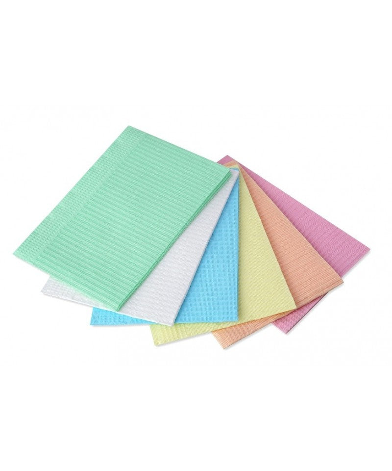 Двупластовият лигавник за щипка (33 × 45 см) е създаден за професионална употреба в стоматологични, козметични и медицински среди.