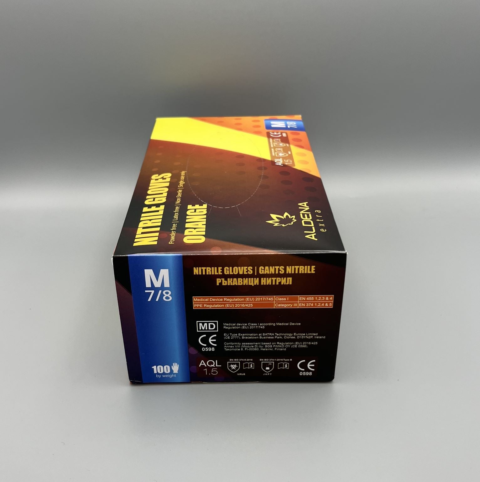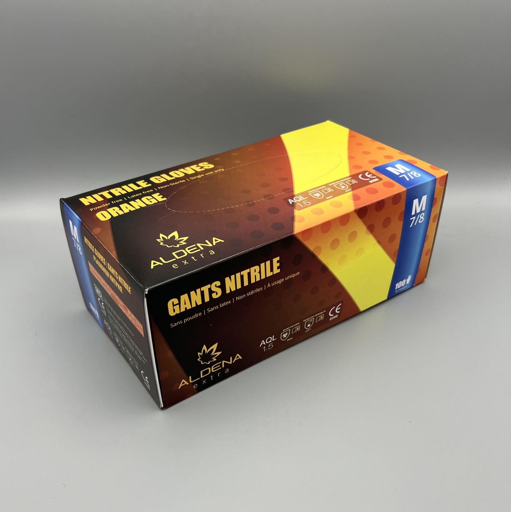 Оранжеви нитрилни ръкавици ALDENA 8 гр – 50 бр. Индустриални ръкавици с диамантена текстура за сигурен захват. nitrile gloves orange ALDENA, здрави, химически устойчиви, без пудра и латекс, професионални ръкавици.