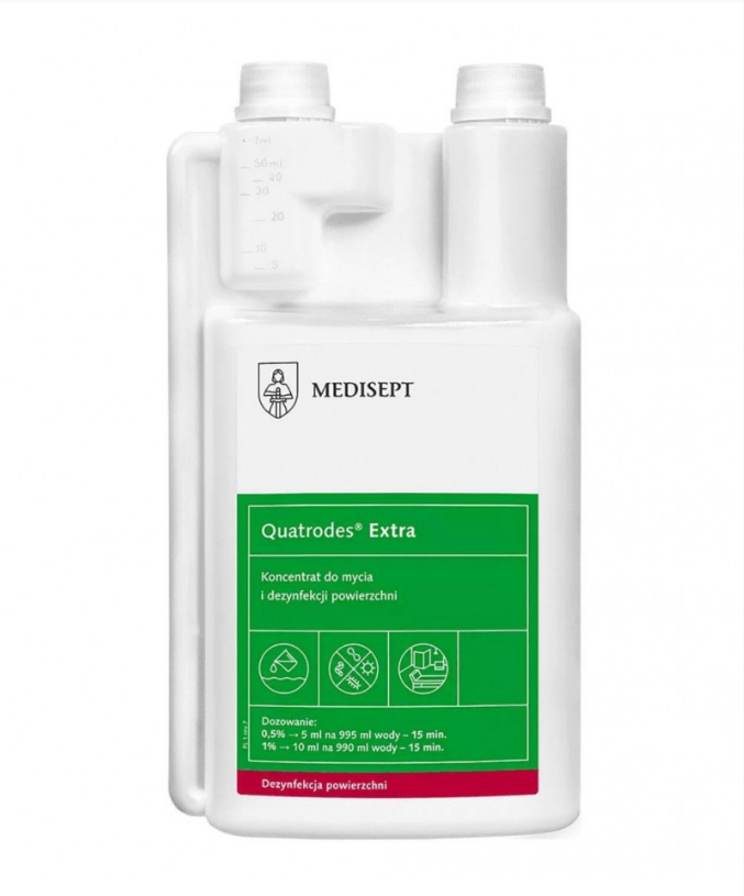 Quatrodes Extra е висококачествен концентриран препарат за дезинфекция и почистване на повърхности в медицинската и професионалната зона.