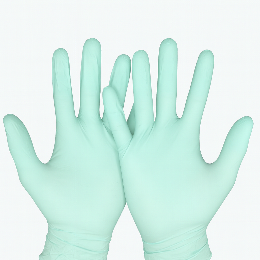 Нитрилните ръкавици – зелени осигуряват сигурна защита, висока устойчивост и комфорт при работа. Изработени от нитрилен каучук (NBR), те не съдържат натурален латекс и са безопасни за хора с алергии. Благодарение на своята еластичност, ръкавиците прилягат плътно към ръката, осигурявайки пълен контрол и удобство при работа. Елегантният зелен цвят придава професионален и хигиеничен вид.