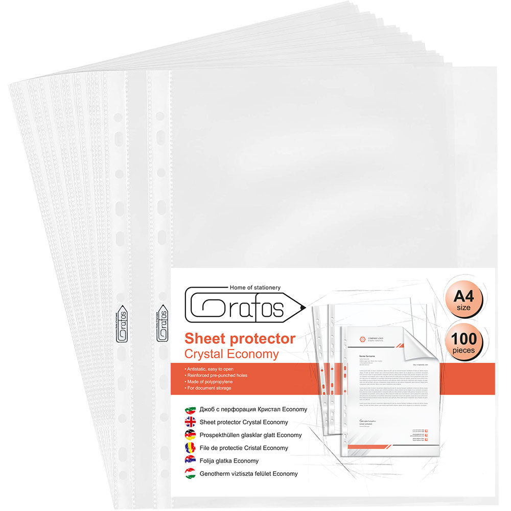 Джоб кристал Grafos Economy A4 30 µm | Прозрачни джобове, 100 бр