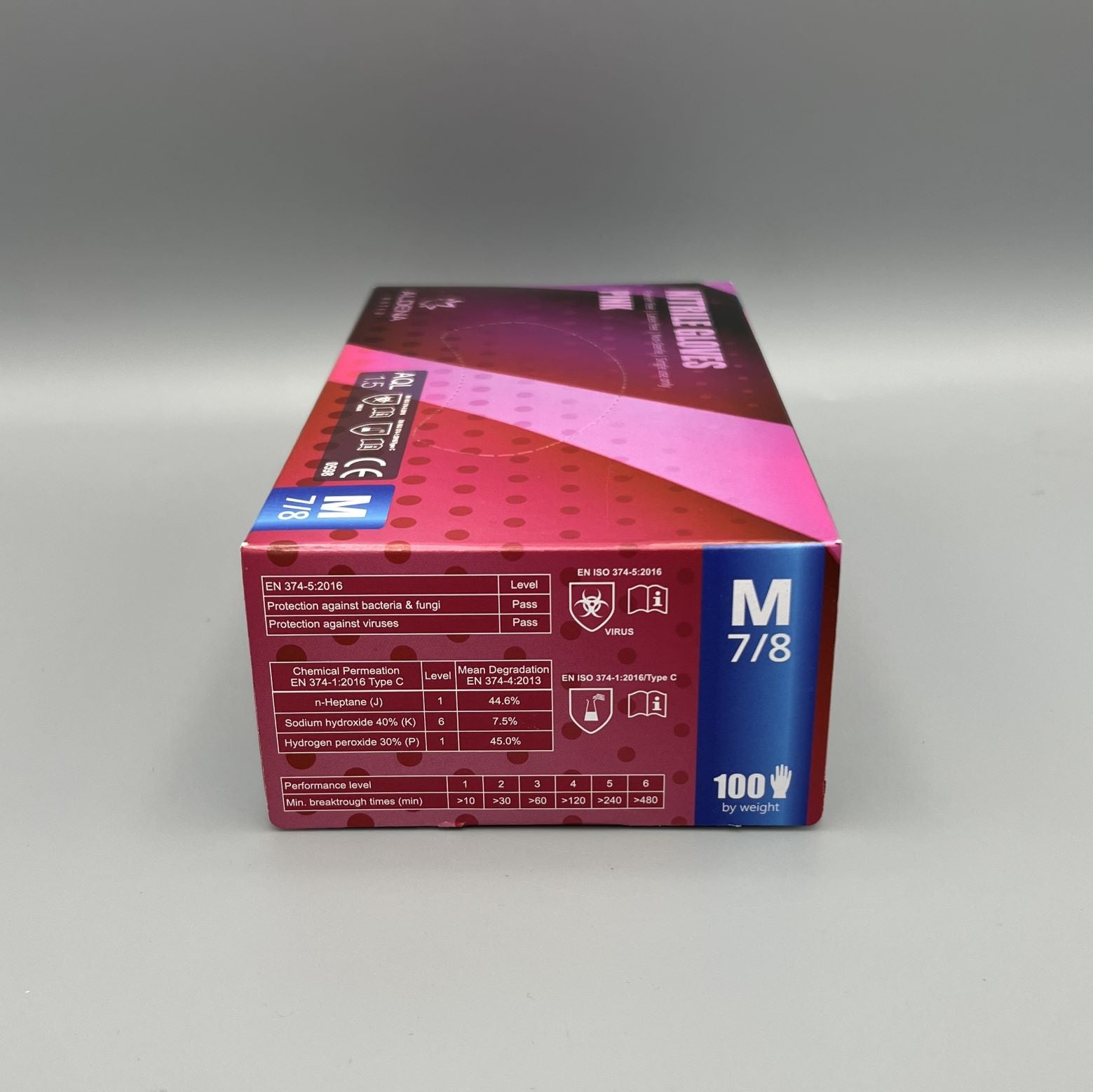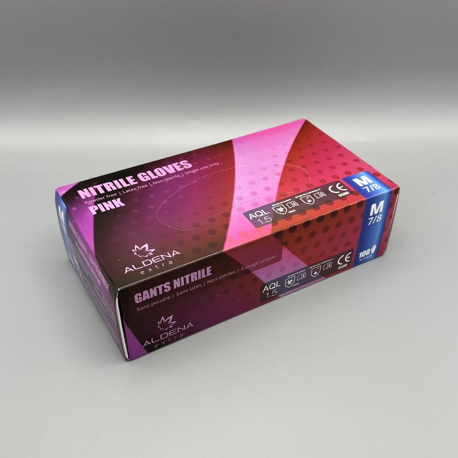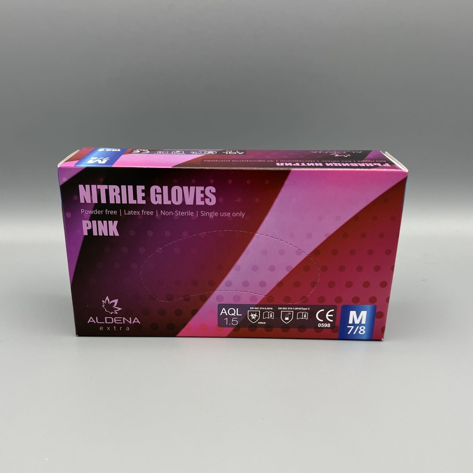 Нитрилните ръкавици ALDENA 3 гр. – розови комбинират защита, комфорт и стил. Изработени от висококачествен нитрилен каучук (NBR), те са издръжливи и гъвкави, без да съдържат латекс или пудра, което ги прави подходящи за хора с чувствителна кожа. Леката структура осигурява отлично усещане и контрол при работа, а цветът придава професионален и естетичен вид.